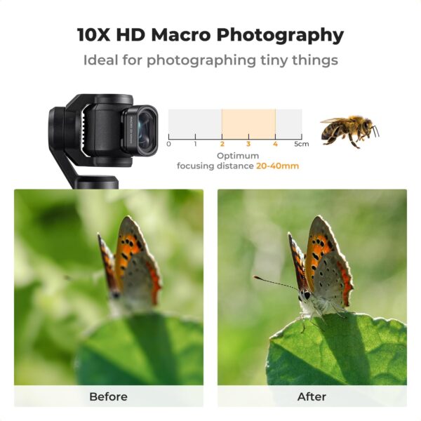 The K&F Concept 10X Macro Lens is the perfect accessory for enhancing the close-up photography capabilities of your DJI Osmo Pocket 3. With its high-definition macro lens, this product allows you to capture stunningly detailed shots with ease.
