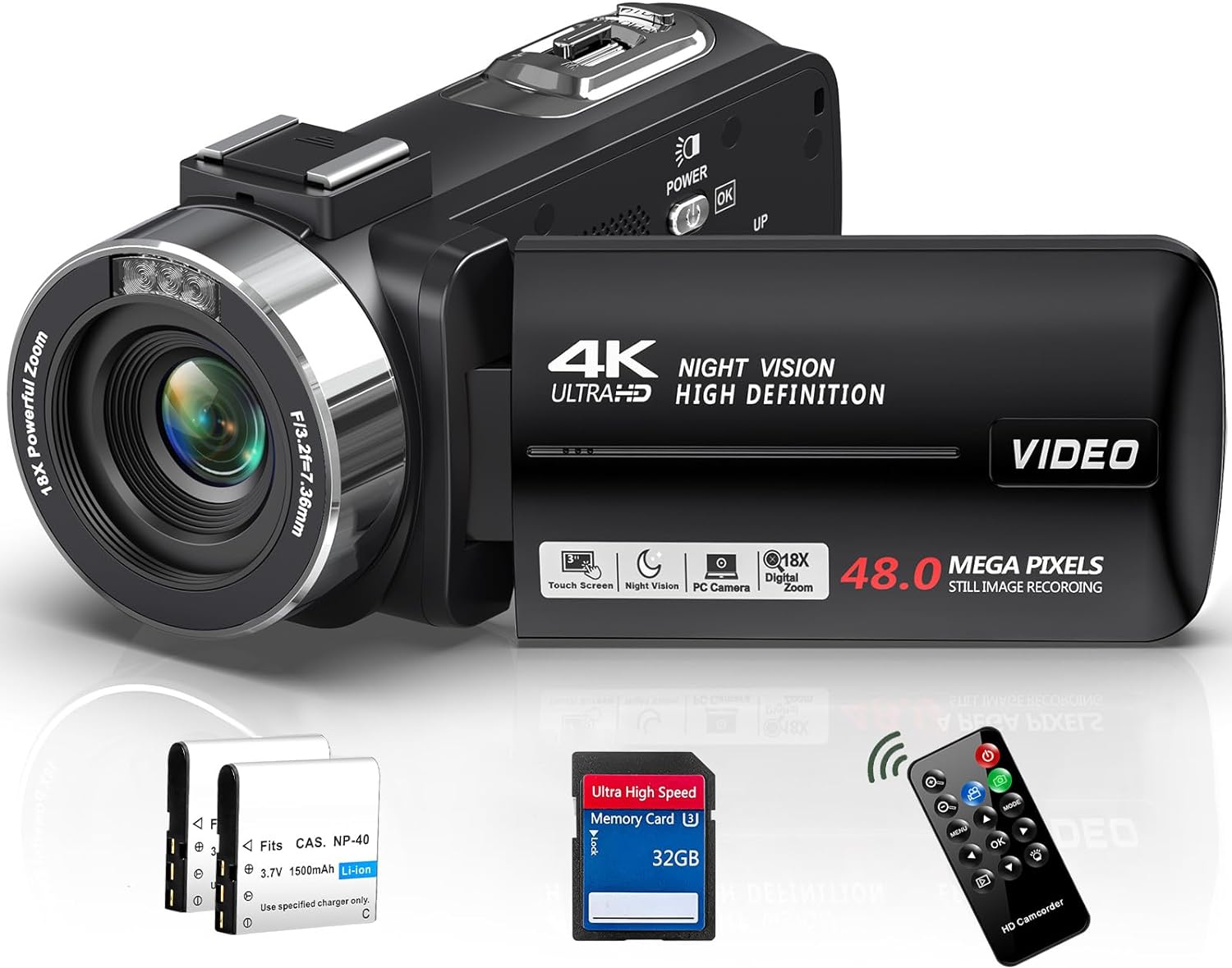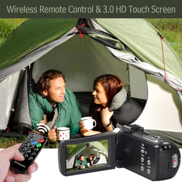 This camcorder features a 3.0 inch IPS screen that allows you to easily frame your shots and view your footage in real-time. The included remote control makes it easy to start and stop recording without having to touch the camera, perfect for vlogging and creating content for YouTube.