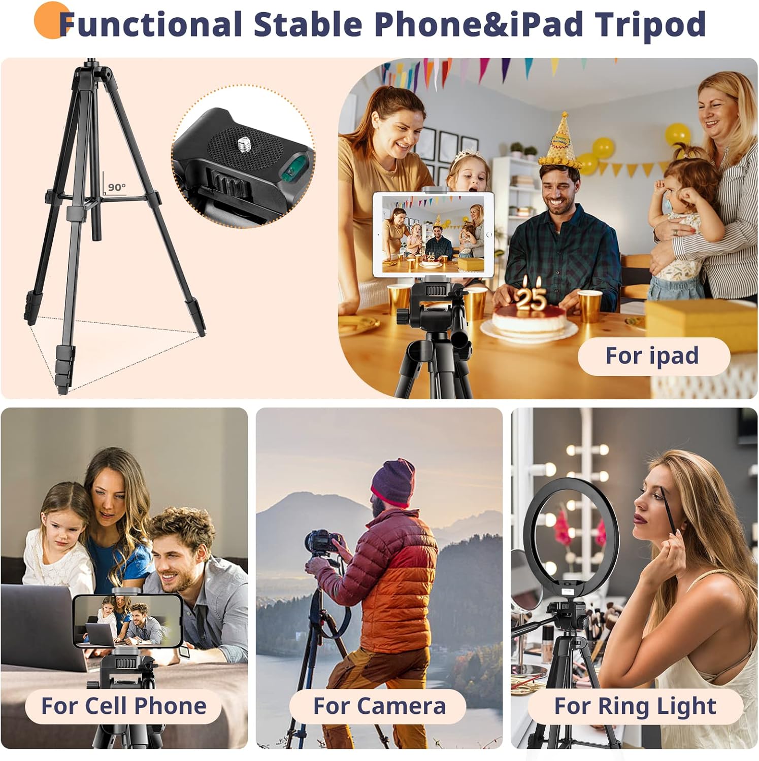 64” Phone&Tablet Tripod, Aureday Cell Phone Tripod for iPhone with Wireless Remote and Phone Holder, Extendable Tripod Stand for iPad, Suit for Video Recording/Makeup/Live Streaming